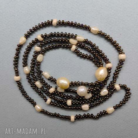 szybka wysyłkaNaszyjnik długi sznur małych pereł. Perełki szklane małe 5 mm i koraliki drobne szkło w kolorze metalizowanym, sznur długi 47 cm89,00 zł