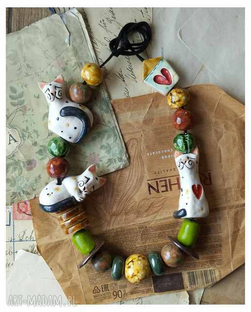 Korale z kotami w jesiennych barwach. Ceramiczne korale wykonane z gliny szamotowej, Długość ok 40 cm, W stylu boho326,00 zł
